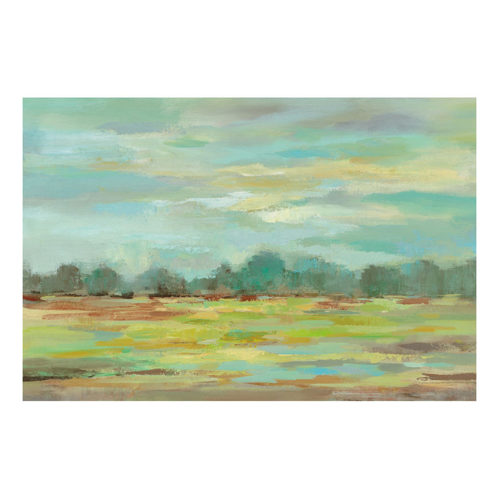 abstract,beige,blue,brown,cream,field,gray,green,grey,landscape,meadow,teal,trees,yellow
